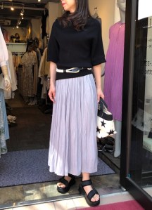 ヴィンテージサテンプリーツスカート ¥4290💕 毎回大人気で即売れのヴィンテージサテンプリーツスカートの新カラーが到着しました💕 他にマスタードとブルーグリーンの3カラーとなっております 気になる方はお早めにチェックしてみてくださいね💕🙌 トップス ¥7590 ベルト ¥6490 スカート ¥4290 サンダル ¥9350 バック ¥ 2530 2021年4月3日