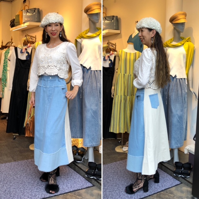 レースデザイントップス ¥7590😍 ショートの着丈がめちゃキュートなコードレースのトップスと配色デザインデニムスカートのコーデはいかがでしょう? こちらは、パンツのデザインもございます💕 新作が30アイテムほど入荷しておりますのでお楽しみにですーーー💕 2021年4月5日