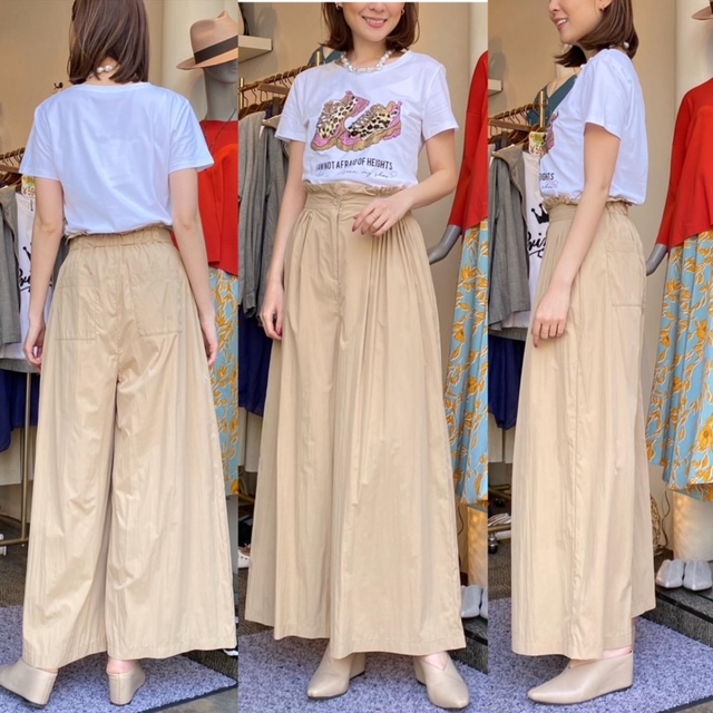 Tシャツ¥7040 パンツ¥9790✨ 可愛いイラストTシャツに、シャリ感のある超軽量のワイドパンツを合わせてみました💛 パンツはとにかく履き心地が良いのにキチンと感もあり、とってもおすすめです。 身体の余計なラインを拾わないのも嬉しいです✨✨ パンツ素材 表地ナイロン50%ポリエステル50% 裏地ポリエステル100% Tシャツ¥7040(税込) パンツ¥9790(税込) 2021年4月8日
