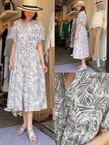 ワンピース¥11000✨ 爽やかなリーフ柄のワンピースが入荷しております🌿 長めのお袖で二の腕が隠れ、フレアなシルエットが腰回りをカバーしてくれます✨ 春夏に大活躍すること間違いなしです💕 レーヨン80%ポリエステル20% ワンピース¥11000 2021年4月8日