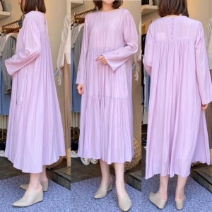 ワンピース¥25300✨ シルクのように柔らかい肌触りのワンピース✨✨ 淡いパープルは顔映りが良く、お肌を綺麗に見せてくれますよ☺️✨ レギンスやスキニーを合わせても良いかと思います💕 ぜひご試着にいらしてください🤗 ポリエステル100% ワンピース¥25300 2021年4月9日