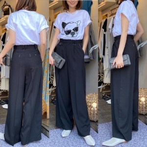 パンツ¥10780 ウォレットバッグ¥4950✨ ワンちゃんイラストのTシャツに、ブラックのワイドパンツを合わせてクールに着こなすのもおすすめです😊 パンツはホワイトのステッチがポイント✨ ハイウエストで脚長効果も抜群です❣️ パンツ素材ポリエステル95%ポリウレタン5% パンツ¥10780 ウォレットバッグ¥4950 2021年4月9日