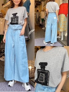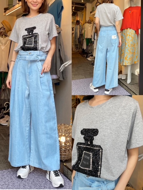 Tシャツ¥7040 デニムワイドパンツ¥16280✨ スパンコールデザインがポイントのTシャツに、昨年も大人気だったデニムのワイドパンツ💛🧡 デニムは柔らかく、履き心地もとても良いですよ😊✨ Tシャツ¥7040 デニムワイドパンツ¥16280 2021年4月11日