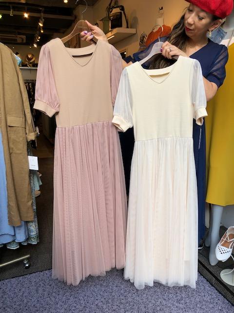 半袖チュールワンピース💕 とっても綺麗なシルエットのニット❎チュールのワンピースが入荷しました💕 半袖なので一枚でサラッと着ていただけます👍 お家でのホームクリーニングOK そっと手洗い又はドライコースでお洗濯されて下さいね ネイビー、ホワイト、ライトベージュの3カラーで展開しております ニット❎チュールのワンピース ¥15400 2021年4月20日
