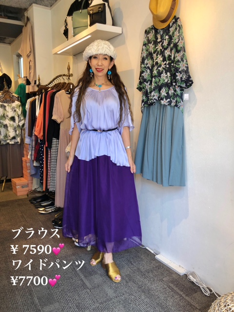 パープルのシフォンワイドパンツ ¥7700💕 シックなパープルのワイドパンツが到着しました💕😃透けない裏地を貼っていて、一枚でサラッと着ていただけます お写真のパープルの他に、アイボリー、グレージュ、ブラック、レッド、マスタードがございます ウェストは総ゴムでフリーサイズとなっております ラベンダーカラーのブラウスは、取り外し可能なベルト付きです⭐️⭐️⭐️ とろみシフォンのオチ感があり、6月の紫陽花みたいに華やかな一枚です😍 2021年4月23日