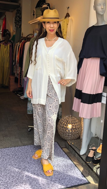 手書きフラワープリントのブラウス💕 シックな手書きフラワーが素敵なプリントブラウスが到着しました💕 モノトーンのコーデはもちろん合いますが、こんなキュートなピンクのボトムスも合いますよーーー 花柄トップス ¥13200💕 シフォンワイドパンツ ¥7700 2021年4月25日