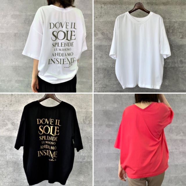 前後着用のロゴTシャツ💕 ¥6490💕 太陽が照りつけている所に一緒に行こう】という意味のイタリア語💕 カジュアルな中に女性らしさが感じられるシルエットです😍 ラフなスタイリングの中にロゴがアクセントを加えてくれます⭐️ シンプル何卒Vネックとロゴの丸首の2WAYで使えるお役立ちTシャツです ハイクオリティな素材感で大人女子にピッタリのTシャツです👍 Quality 綿 95% ポリウレタン 5% Size(Free) 2021年5月12日