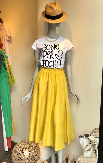 ロゴTシャツと黄色のスカート💕 イタリア🇮🇹インポートのロゴTシャツとサフランイエローカラーのリネンスカートのコーデはいかがでしょうか? カジュアルだけど女らしくて、元気で華やかな印象です😃⭐️🙌 Tシャツは比較的コンパクトなシルエットなので、S〜Mサイズの方にお薦めです💕 スカートはバックウェストゴム仕様でとっても着心地が良く、スッキリしたシルエットです💕 Tシャツ ¥5390 スカート ¥15400 帽子 ¥3045 2021年5月12日