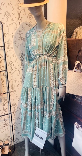 パネルプリントワンピースセージグリーン 爽やかなセージグリーンのワンピースが到着しました シックなパネルプリントが素敵⭐️ お色違いはアイボリーとブラックになります 梅雨の寒さもルンルンで乗り切れそうな一着です パネルプリントワンピース ¥5900 フリーサイズ 2021年5月12日