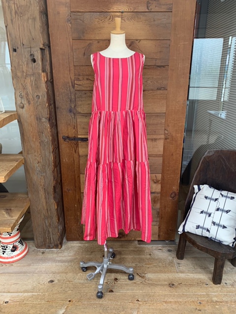 赤いマルチストライプのワンピース💕 大人気のマルチストライプのワンピースが再入荷しました💕😃 インド綿のソフトコットン素材で裏地もコットンが付いております 透けないので、一枚で着用出来ます⭐️👍 生地から作ったデザイナーの渾身の1着 身長の小柄なお客様にもお勧めのワンピースです💕 マルチストライプのワンピース ¥17600 2021年5月12日