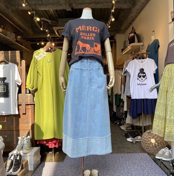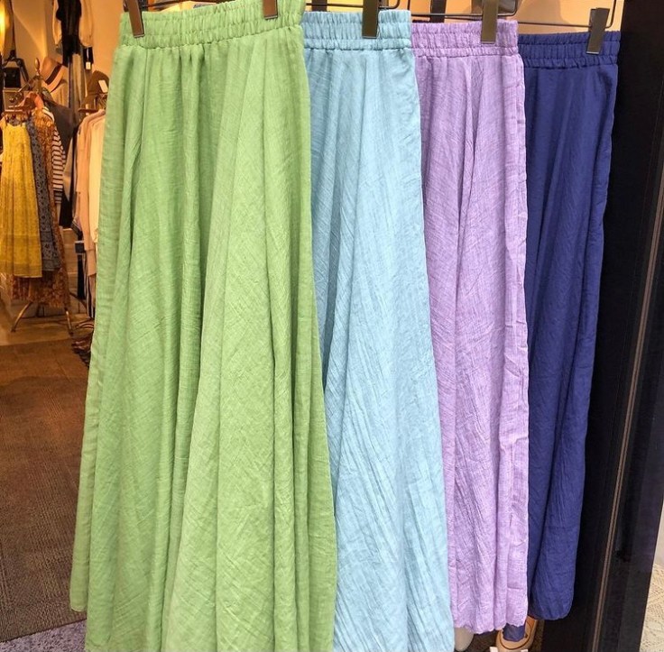 コットンフレアスカート 💕¥7700 ミントグリーン、サックスブルー 、ラベンダー、ネイビー、パープルの素敵なフレアスカート が再入荷しました💕 とっても軽くて透けない⭐️⭐️⭐️ テイシャツ やスニーカーで爽やかなお出かけスタイル💕が完成しますよぉ〜 気持ち上がる⤴️スカートです 2021年5月15日