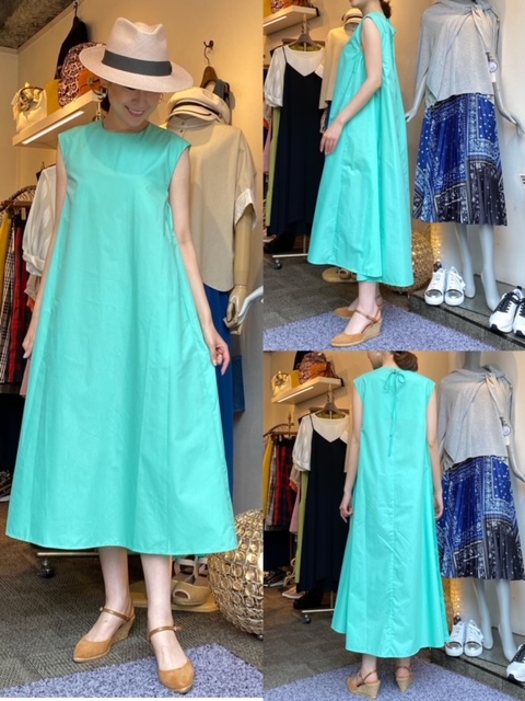ワンピース¥10780✨ 大人気のサマーワンピース✨ ライムグリーン、チェリーピンク、ライトベージュ、ライトブルー、ラベンダーパープル、ブラックの6カラーとなっております✨ ポリエステルとコットンの混紡でシワになりにくいので、いつでも綺麗に着ていただけます😊 ワンピース¥10780 2021年5月22日