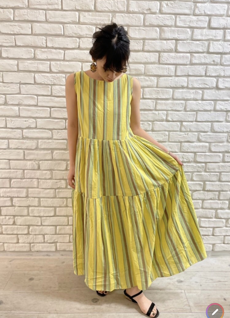 マルチストライプのコットンワンピース💕 オリジナルの生地を使ったとってもスタイリッシュなワンピースが最終入荷となりました💕 これだけの分量を使ったティアードのワンピースなのに、とても軽く着心地が良いです 今年、気分を上げる素敵なワンピースをまだ買えていなかったお客様にオススメの一着です! お色違いの赤も再入荷致しますよん モデル 身長155センチです 小柄な方にもオススメのワンピースです ワンピース ¥17600💕 2021年5月22日