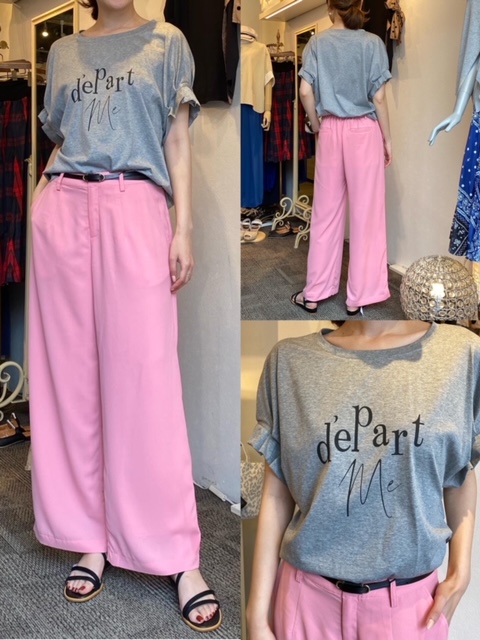 ロゴデザインTシャツ ¥9790 パンツ¥8690✨ 大人可愛いデザインTシャツに、トレンドのカラーパンツ✨ Tシャツはフレンチシックなロゴとカットプリーツのお袖が、気になる二の腕を細く見せてくれます🌿 ロゴデザインTシャツ ¥9790 パンツ¥8690 2021年5月23日