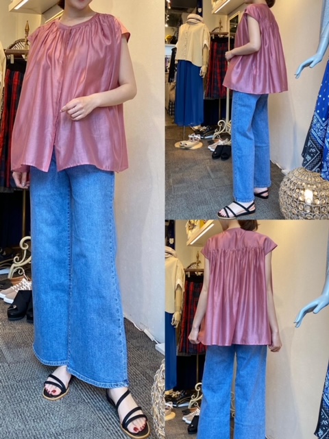 シアーブラウス¥10780 ワイドデニム¥11800✨ ピンクシフォンのブラウス✨ シアー素材のブラウスはテンセル90%、ポリエステル10%の上質素材です。 気になる方はぜひお早めにお問い合わせください😊 シアーブラウス¥10780 ワイドデニム¥11800 2021年5月23日