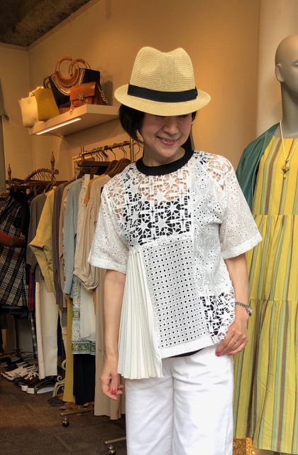 星のレーストップス ¥10450💕 星のレース生地を切り替えたお洒落トップスが到着しました。 白と黒の2カラーとなっております💕 上質なコットン素材で、着心地も◎ 中折れ帽子 ¥3045 トップス ¥10450 2021年5月23日