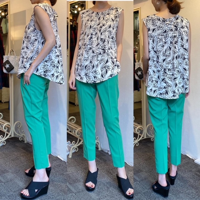 トップス¥7590✨ 夏らしいリーフ柄デザインのトップス🌿 ボトムスにインしても着られる丈間ですので、スカートなどにもぴったりです✨ ポリエステル100%でお手入れも楽ちんですよ😊 トップス¥7590 2021年5月26日