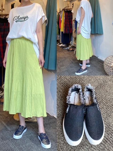 スカート16500円 スニーカー9790円✨ 短めの丈感で動きやすいスカートもおすすめです✨ シワ加工のプリーツが、カジュアルさをプラスしてくれるので、スニーカーにもよく合います🌿 ポリエステル100%でお手入れもしやすいのが嬉しいポイント✨ スカート16500円 スニーカー9790円 2021年5月26日
