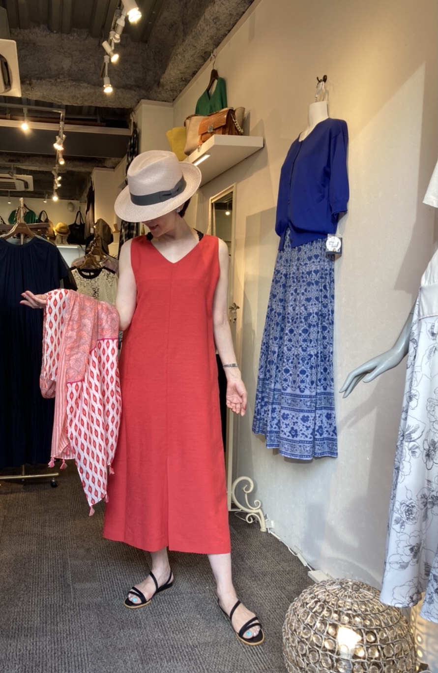 前後2WAYワンピース 麻調ポリエステル素材のワンピースは、丸首とVネックの前後で着用可能なお役立ちワンピースです オススメのポイントは ①脇ファスナーで着脱もしやすい⭐️ ②シワになりにくいポリエステル素材 ③Vネックとラウンドネックの2ネックラインで楽しめます ④ポケット付き などなど、、 こちらのレッドの他に、ブルー、ライトベージュ、ブラックで展開しております ワンピース ¥17600 ストール ¥6490 2021年5月26日