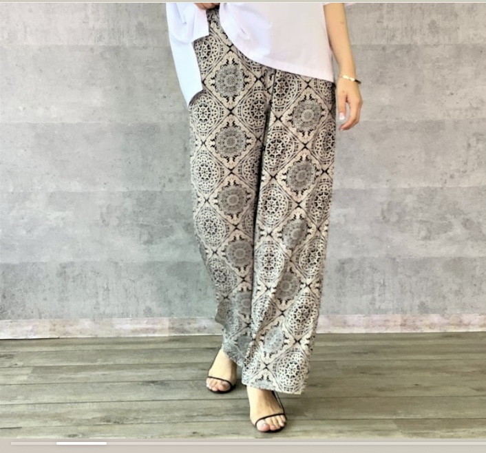 アラベスクプリントのとろみパンツ💕 人気のテロテロとろみパンツが再入荷致しました💕 シックなアラベスク柄がとってもおしゃれ⭐️⭐️⭐️ この夏大活躍しそうなサラサラのノーストレスパンツです アラベスク柄パンツ ¥12100 2021年5月26日