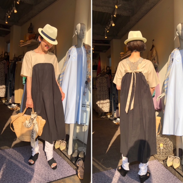 配色バックリボンワンピース💕 とっても軽い夏素材のバックリボンワンピースが到着しました💕 上半身はコットンポリエステルの混紡素材、スカート部分はストレッチ感のある綿麻素材になっていて、シワになりにくいです⭐️⭐️⭐️ 着心地もお手入れも、ダブルで楽ちんなワンピースです💕 こちらはライトベージュ❎ブラックのカラーとなっております お色違いは、白❎サックスブルー です フリーサイズ ワンピース ¥14300 サンダル ¥8690 帽子 ¥3190 バック ¥7590 2021年6月3日
