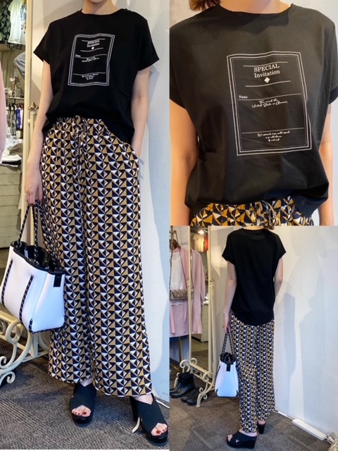 Tシャツ¥4290 パンツ¥12100✨ 長めのフレンチスリーブで二の腕もしっかり隠れるTシャツに、履き心地が良くリラクシーなパンツはいかがでしょうか✨ パンツはシワになりにくくお手入れも簡単でおすすめですよー❣️ Tシャツ¥4290 パンツ¥12100 バッグ¥8690 2021年6月4日