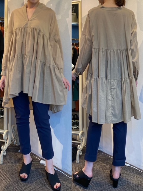 ティアードブラウス¥13200✨ トレンドのティアードブラウス✨ キーネックのタイプもございます。 お尻が隠れる長めの丈があるので、スキニーパンツを合わせてもバランスがとりやすくおすすめです😊 コットン100% ティアードブラウス¥13200 2021年6月7日