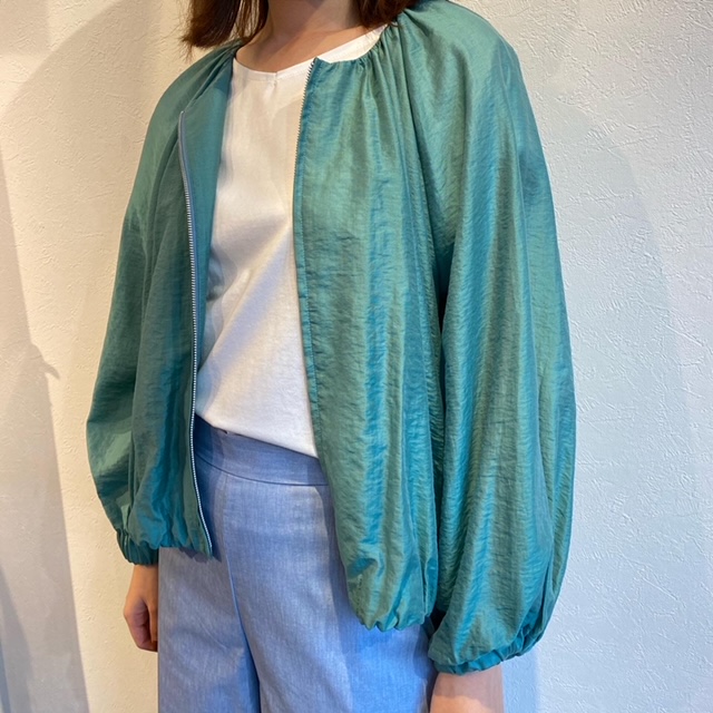 ノーカラージャンパー¥9790✨ 肌寒い日や、真夏のクーラー避けにぴったりなノーカラージャンパー。 トレンドのグリーンは色々なカラーに合わせやすくおすすめです🌿✨ セルロース76%ナイロン24%なので、軽くてとっても着やすいですよ😊 ノーカラージャンパー¥9790 2021年6月8日