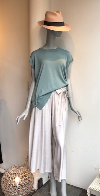 セージグリーン❎シルバーグレー 今期人気のセージグリーンのサマーニットととろみ素材の涼しいワイドパンツの爽やかなコーデはいかがでしょうか? キチンと見えて高級感もあり👍 めちゃ涼しくてサラッとした着心地です😍 ニットはアセテートとコットンの混紡素材で肌触りもGOOD👍 お揃いのカーディガンも再入荷致しました💕 展開カラーは、ベージュ、マスタード、カーキ、ブラックなどがございます ニット ¥9790 SALE ¥7832 パンツ ¥10890 2021年6月15日