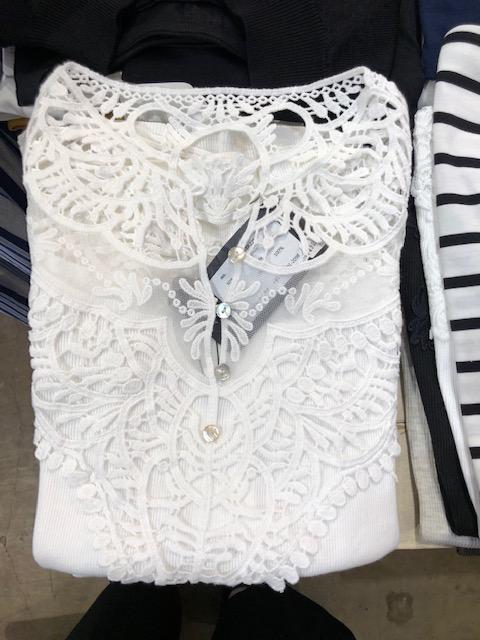 前後レースのトップス ¥4950💕 素敵なレースを前後に配置したお洒落なトップスはいかがでしょうか? 白、グレー、ブラック、カーキ、ネイビーで展開しております 汗をかく毎日ですが、コットン素材で爽やかに着て頂けます😃💕👍 もちろん、ネットに入れてお洗濯機で丸洗いOK🙆♀️でーす 2021年6月15日