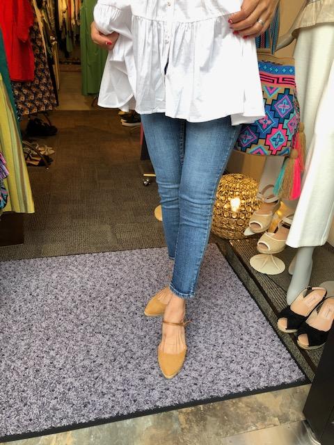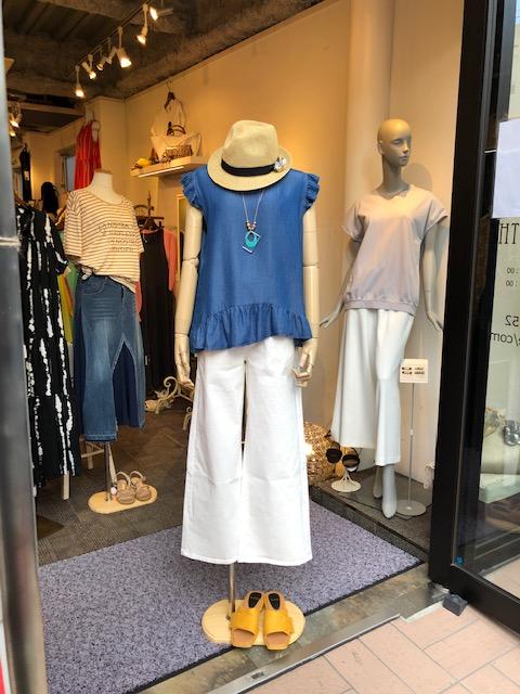 イタリア🇮🇹インポートブラウス💕 レーヨンデニム素材のサラサラのフリルブラウスはブルーのネックレス付きで、セール価格💕 ¥7546です💕 他にも素敵なインポートアイテムが沢山入荷しておりますので、お楽しみにです パンツ ¥15180💕 サンダル ¥6490💕24.5cm 2021年6月25日