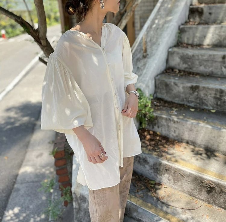 パフブラウス💕SALE💕 薄〜いサマーコットン素材が爽やかな長袖ブラウス💕 贅沢に生地を使ったお袖のボリュームが今年らしい💕 長袖ブラウスなので秋冬もインナーとして大活躍してくれそう🎉😍 今このお値段で買えるのは、か、な、り、お得💕💕💕 お写真のエクリュの他にグリーンがございます パフブラウス ¥8690→ SALE💕¥6083🎉 コメントは受け付けていません。