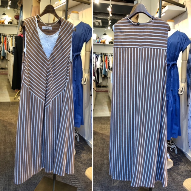ストライプ切り替えワンピース 💕 ストライプをバイヤスに切り替えた、デザイン性の高いワンピースが到着しました💕 スッキリした深めのVネックでインナーを変えれば、秋の立ち上がりもお洒落なブラウンです💕💕💕 ワンピース ¥18480 SALE💕 ¥12936😍 2021年7月10日