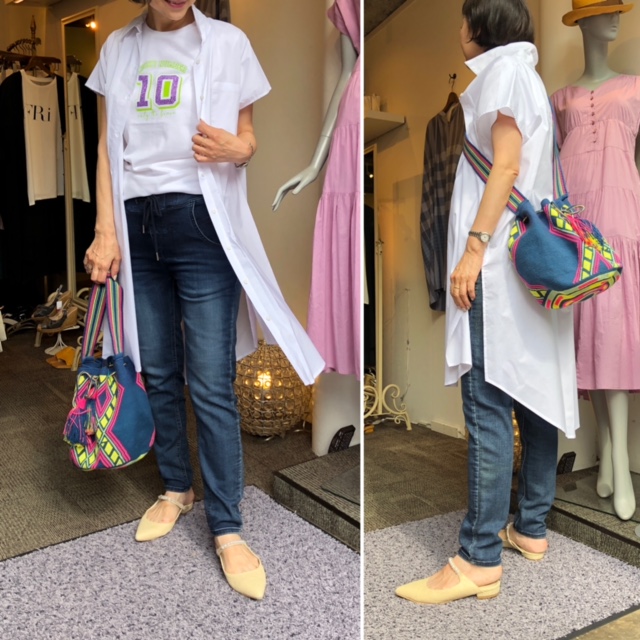 ホワイトシャツ💕 めちゃお洒落なコットン素材のロングシャツが入荷しました💕 サイドスリットやバックテールなど、スッキリ見せのテクが満載💕 ネックラインの中央に、お洒落な星の刺繍が入っております💕 お色違いはブラックがございます Tシャツ SALE ¥ 5280💕 ロングシャツ SALE ¥7546💕 デニム ¥15180💕 サンダル ¥9350💕 2021年7月11日
