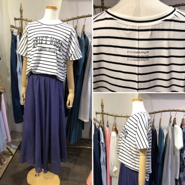 ボーダー❎ロゴTシャツ💕 日本製🇯🇵の生地と縫製の上質なTシャツが入荷しました💕 しなやかな生地でとても着心地が良いです💕 こちらのボーダーの他に、ダークネイビーと白がございます Tシャツ ¥9900💕 スカート SALE ¥6160💕😍 2021年7月11日