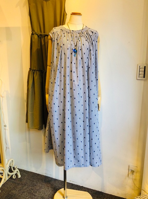 ドット❎ストライプのワンピース 💕 ストライプにドットを重ねたお洒落なテキスタイル💕 軽ーいコットン素材のワンピースで、高級感が漂います⭐️⭐️⭐️ 着丈が長すぎないので、小柄な方にもススメのワンピースです🙌 一点のみとなっております ワンピース SALE ¥9933 2021年7月11日