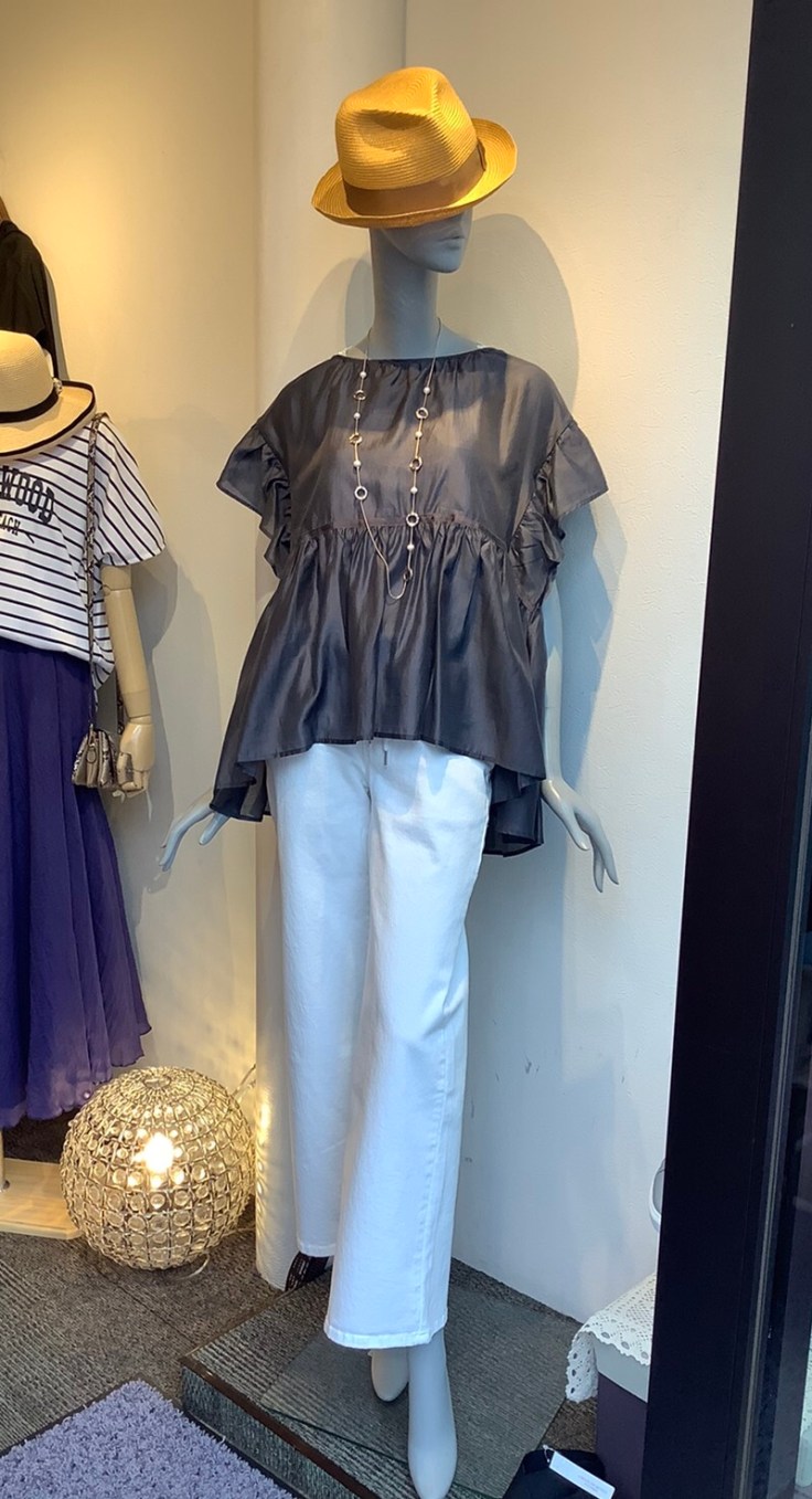 お袖フリルブラウス💕 今シーズントレンドのシアー素材のフリルトップスが到着しました💕 テンセル素材で、艶と光沢感がありとても良い着心地です💕 手洗い可能なアイテムです ブラウス ¥10780 SALE ¥7546💕💕💕 2021年7月12日