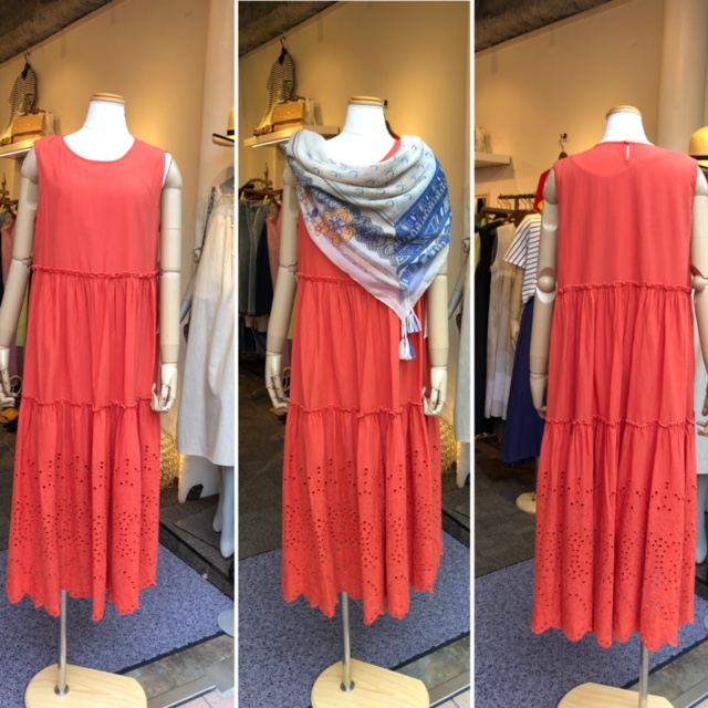 レースのティアードワンピース 💕😍 上質なコットンレースをティアードに切り替えたサマーワンピースが到着しております💕 とっても軽くて涼しい💕 肩幅をしっかりととっておりますので、着痩せ効果もあり🎉😍 こちらのオレンジの他にカーキもご用意しております 夏のお出かけにぜひ一枚いかがでしょうか? レースティアードワンピース¥17380 SALE ¥12166💕💕💕 2021年7月13日