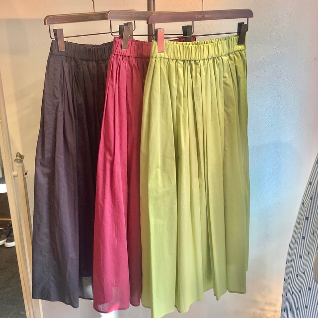 コットンのスカート⭐️⭐️⭐️ 艶のある上質な綿ローン素材のカラースカートが到着しました💕😃💕 着丈もミディ丈なので小柄な方にもお勧めのスカートです⭐️ 各一点のみとなりますのでぜひチェックされてみてくださいねーーー 秋の立ち上がりも、お洒落に着こなせそう💕😍💕 スカート ¥10780 SALE💕¥7546🎉 2021年7月13日