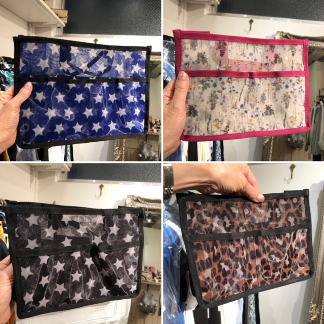 バックインバック💕 ¥2420😍 バックの中の整理に便利なバックインバックに新柄登場です💕 ブラックの星と花柄、新しいレオパードプリントです ブルーの星は引き続きの入荷となります お友達へのちょっとしたプレゼントにも最適ですよーーー ひとまわり大きいサイズは、ブルーの星とゼブラプリントでご用意しております バックインバック ¥2420😍 2021年7月15日