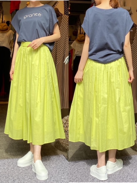 Tシャツ¥6853スカート¥7546✨ シルエットが綺麗と好評のロゴT シャツとコットン100%のスカートコーデ✨ スカートは長すぎない丈感ですので、小柄さんにもおすすめです❣️ Tシャツ¥9790→¥6853 スカート¥10780→¥7546 2021年7月19日