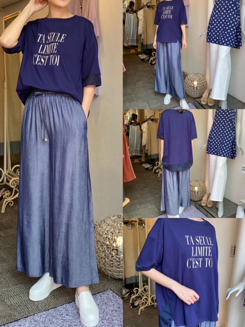 Tシャツ¥6853✨ パンツ¥6050✨ シフォンの切り替えがポイントのロゴTシャツに、光沢のあるテンセル×ポリエステルのワイドパンツ❣️ トップスは前をインしても、しなくてもどちらも素敵です。 リラクシーな雰囲気がおすすめです✨ Tシャツ¥9790→¥6853✨ パンツ¥12100→¥6050✨ 2021年7月26日