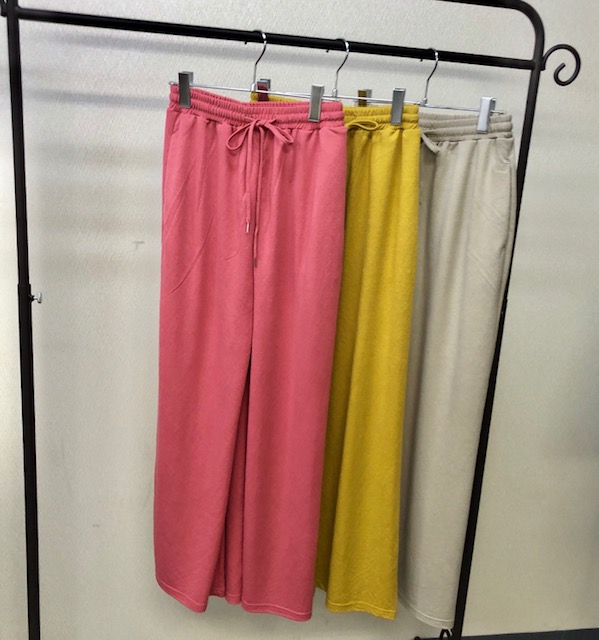 モダール素材のカラーパンツ💕 汗をかいてもサラッサラーのモダール素材💕😍 適度なオチ感で、体のラインを拾いにくいから安心感あり💕 晩夏にに使えるシックなカラーを揃えました👍 カラーパンツ ¥4620💕 2021年8月6日