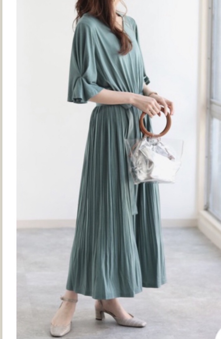 ペールグリーンのワンピース💕 お袖のタックや消しプリーツのスカートがお洒落なカットソー素材のワンピース💕 こちらのワンピースは、特別価格💕😆で販売させていただきます お色違いはブラウンもございます 14日スタートのリニューアルセール🎉ぜひお楽しみにですーーー ワンピース ¥4345😍 2021年8月9日