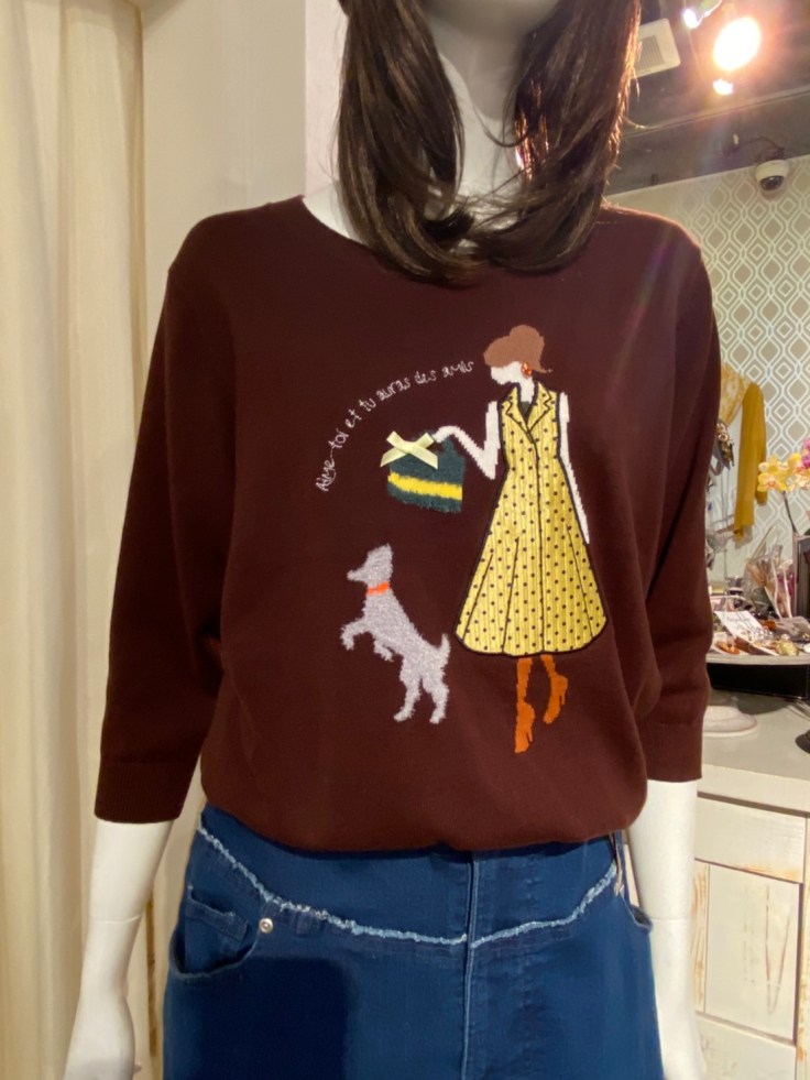 女の子モチーフニット💕 秋一番は、こんなキュートなコットン素材のデザインニットはいかがでしょうか? 七分袖のコットン素材のニットは、秋から春までヘビロテ出来るアイテムです💕 肌触りが敏感な方にはぜひこんなニットをお勧め致します インターシャ加工による繊細な糸の組み合わせでモチーフを編み込んだとってもおしゃれなニットです💕 今季はトップブランドも、モチーフニットを秋冬のコレクションに出しておりますね💕 秋のコレクションはこれからがチャンスです💕💕💕 ニット ¥12100 2021年8月16日