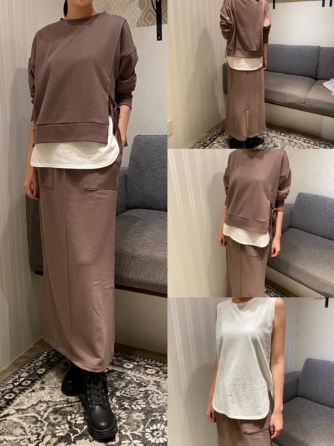 トレーナー&インナー ¥3960 スカート¥5390✨ スタッフいちおしのセットアップアイテム😍❣️ トレーナーとインナーのセットと、同素材のスカートです✨ トレーナーとインナーがセットになっているので、インナーに悩む必要無し❣️ セットアップで着用いただくのがおすすめですが、別々でも着回ししやすいですよー✨✨ トレーナー&インナー ¥3960 スカート¥5390 2021年9月4日