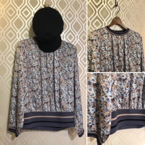 花柄トップス💕 綺麗なリバティ風の花柄プリントが素敵なトップスが再入荷致しました💕 襟と袖口、裾の部分にライン入りのリブ使いでとても着やすいトップスです ベージュにブルー系の花柄でシックなイメージです ホームクリーニングOK🙆♀️ 今からすぐに着られて、春先までとってもお役立ちですーー! 2021年9月7日