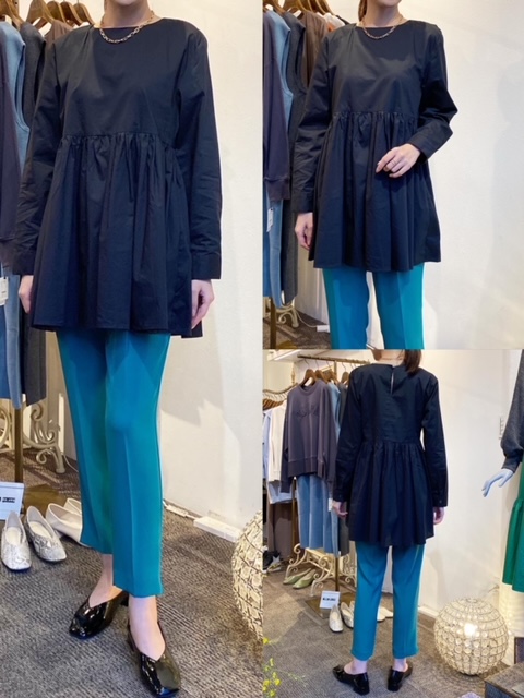 切り替えギャザークルーネックブラウス¥7590✨ カジュアルにも綺麗にも着ていただける切り替えギャザーのクルーネックブラウスが入荷しております✨ 上品なシルエットで、パンツとの相性抜群です ヒップがしっかりと隠れる丈感なので、細身のパンツを合わせても素敵ですよ💕💕 切り替えギャザークルーネックブラウス¥7590 2021年9月10日