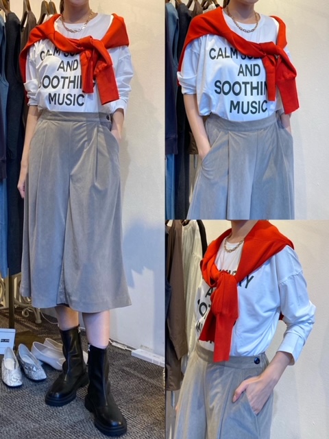 カーディガン¥14300 ロングスリーブT¥6490 パンツ¥10780✨ ロゴロングTシャツに、大人かわいいキュロットパンツ✨ パンツは、同素材のロングジレとセットアップで着用いただけます❣️ カーディガン¥14300 ロングスリーブT¥6490 パンツ¥10780 2021年9月10日