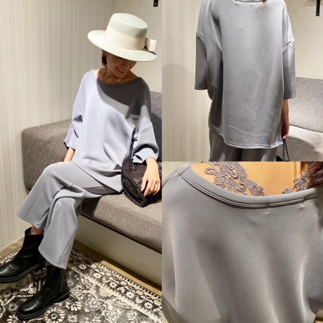 トップス¥8250 パンツ¥9350✨ 大人気のセットアップ💕💕 こちらのライトグレーも大変おすすめです✨ ブルーグレーのようなカラーが絶妙👏🏼✨ それぞれ単体でも着まわししやすいですよー😊❣️ トップス¥8250 パンツ¥9350 2021年9月11日
